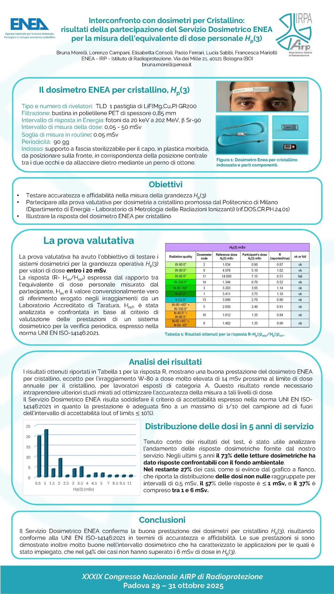 P28 - Interconfronto con dosimetri per cristallino: risultati della partecipazione del Servizio Dosimetrico ENEA per la misura dell’equivalente di dose personale Hp(3)
