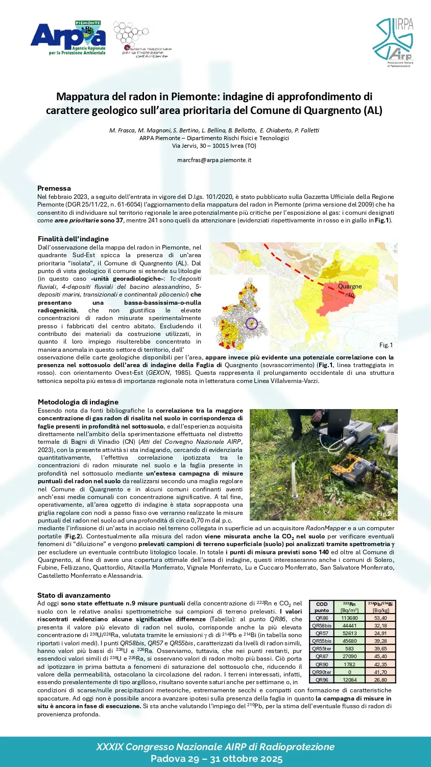 P30 - Mappatura del radon in Piemonte: approfondimento di carattere geologico sull’area prioritaria del Comune di Quargnento (AL)