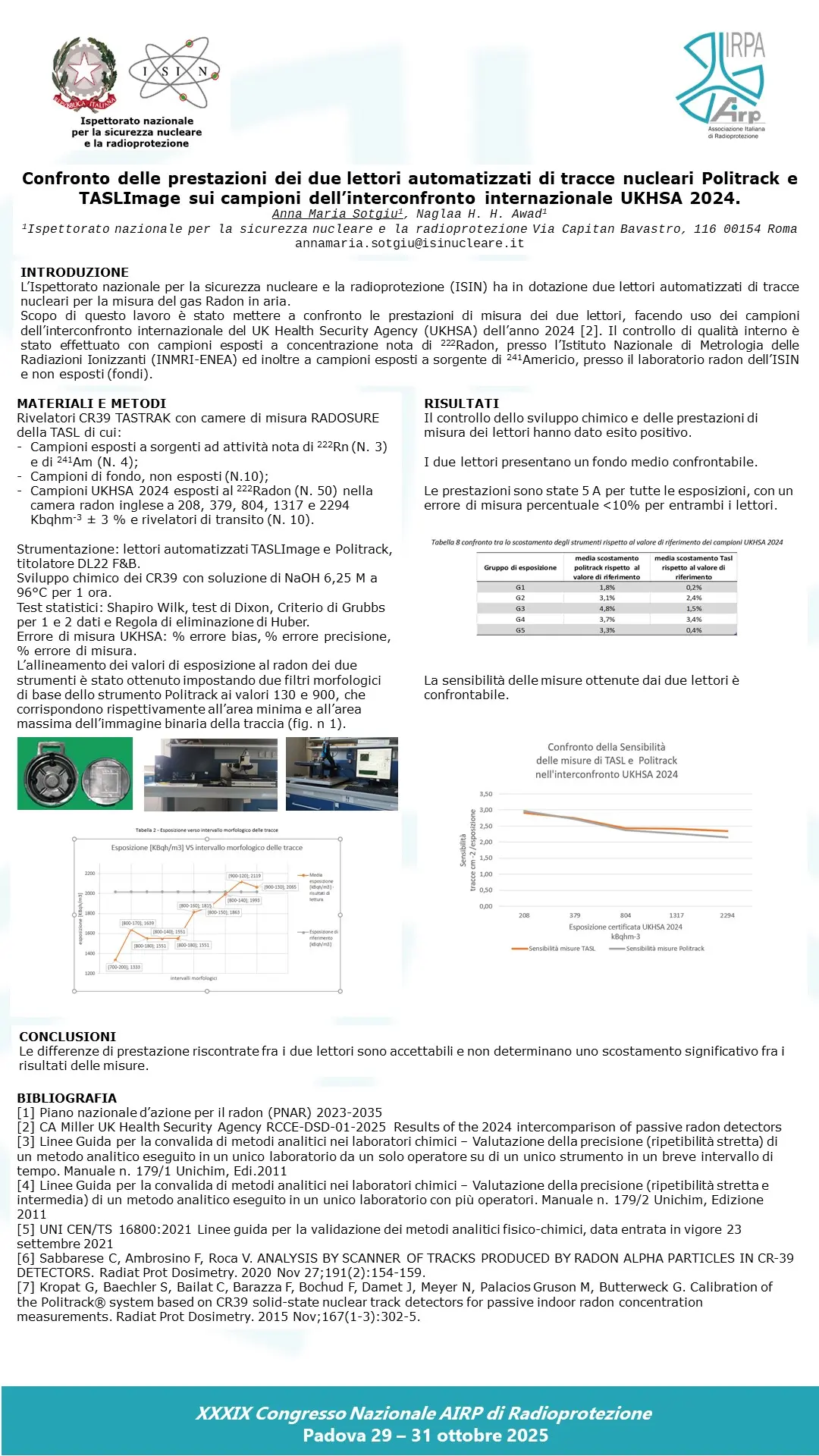 P34 - Confronto delle prestazioni dei due lettori automatizzati di tracce nucleari Politrack e TASLImage sui campioni dell’interconfronto internazionale UKHSA 2024