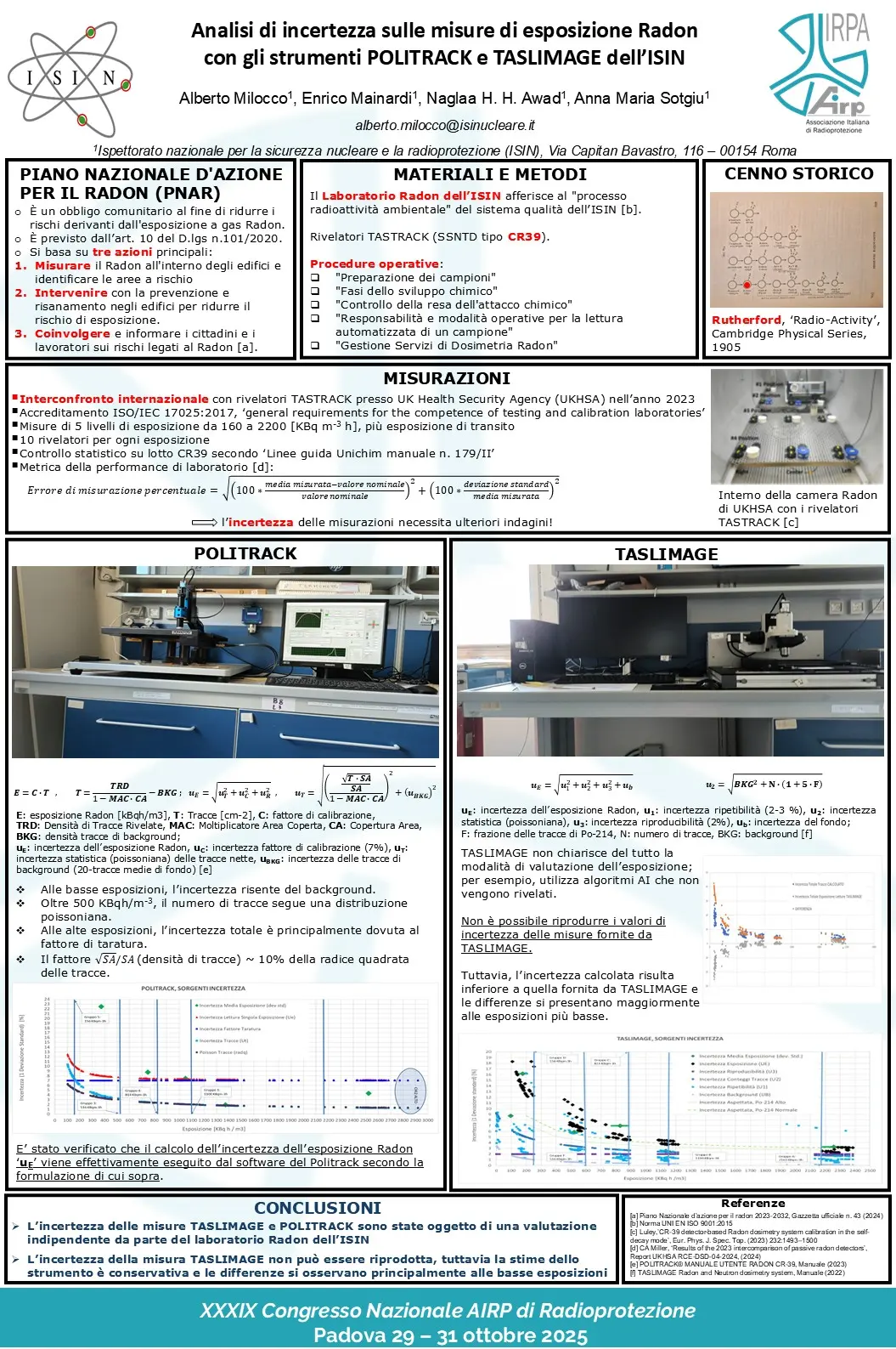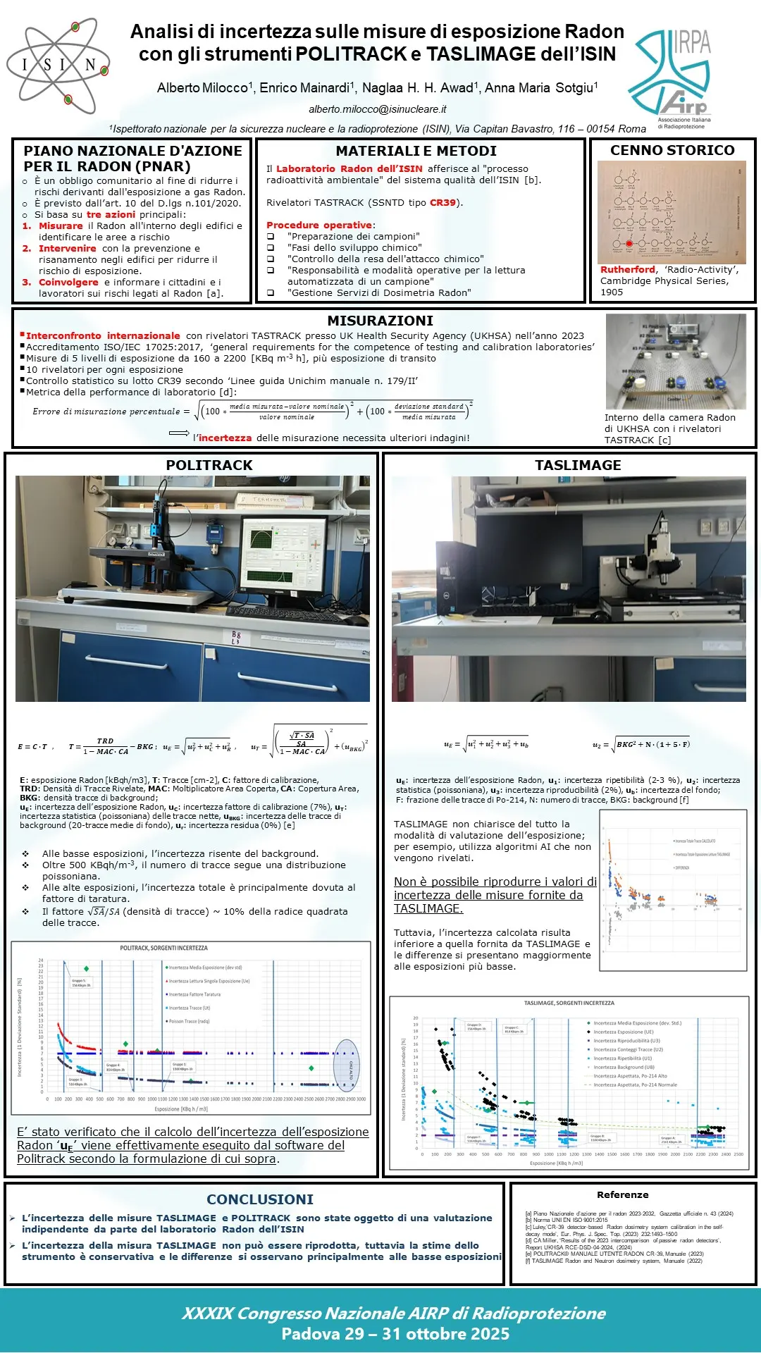 P35 - Analisi di incertezza sulle misure di esposizione Radon degli strumenti Politrack e TASLImage dell’ISIN