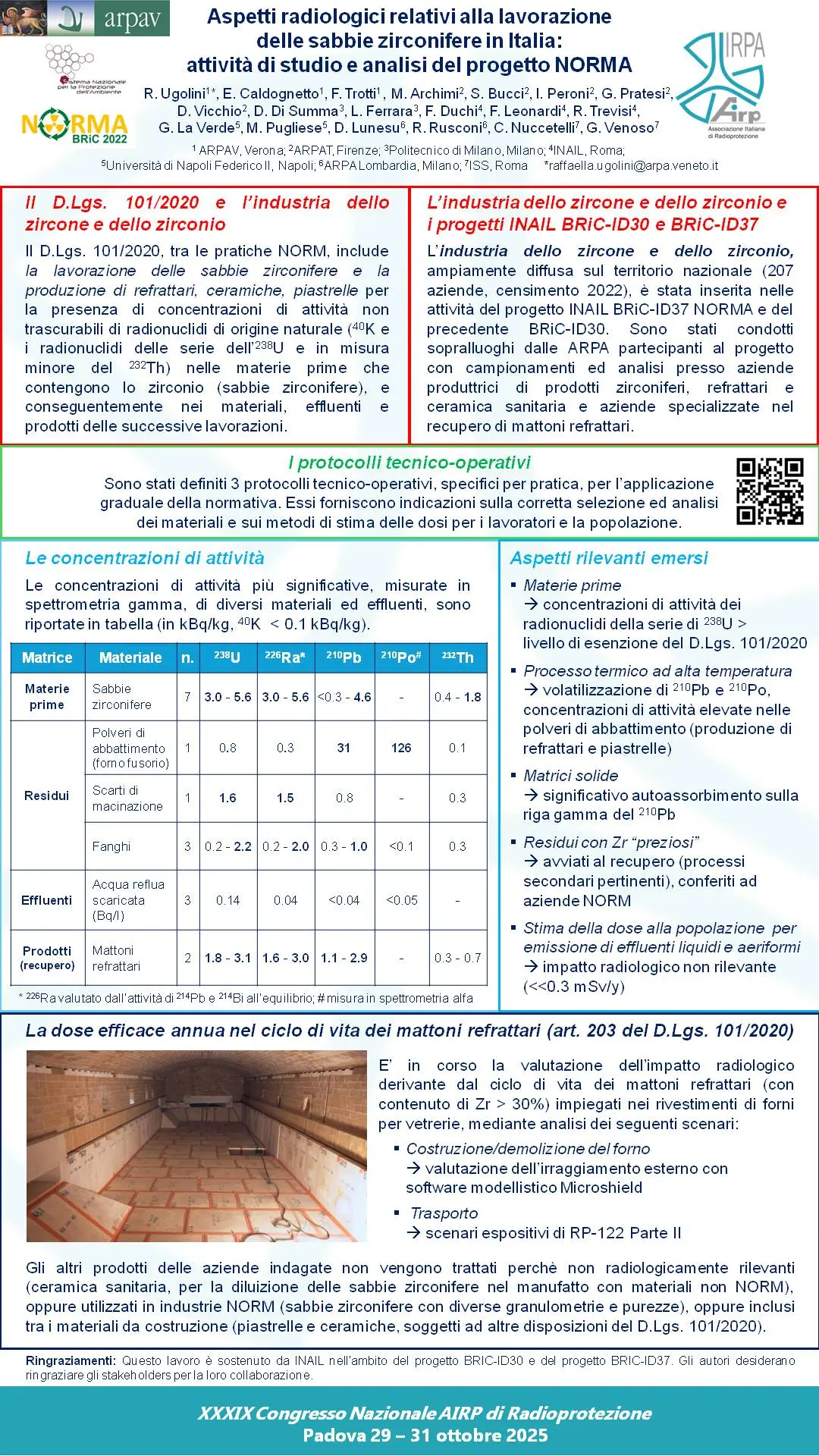P36 - Aspetti radiologici relativi alla lavorazione delle sabbie zirconifere in Italia: attività di studio e analisi del progetto NORMA