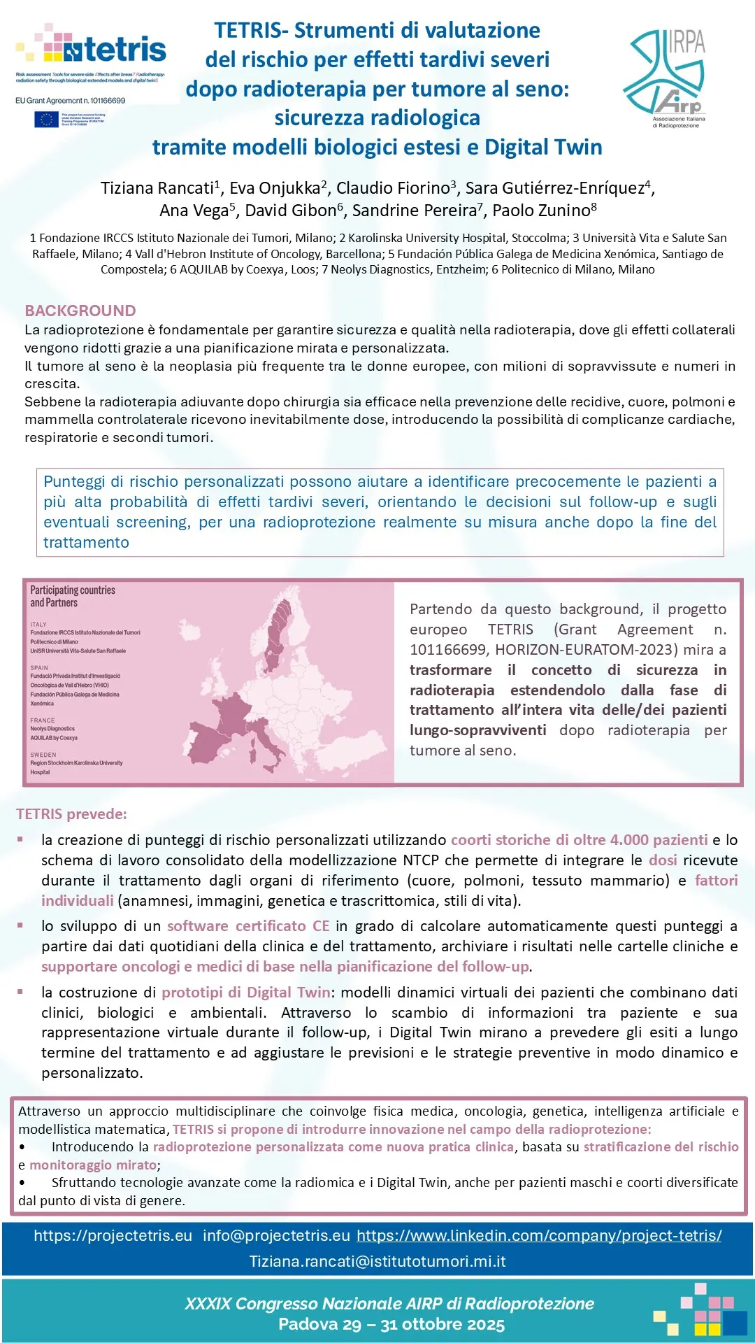P39 - TETRIS – Strumenti di valutazione del rischio per effetti tardivi severi dopo radioterapia per tumore al seno: sicurezza radiologica tramite modelli biologici estesi e Digital Twin