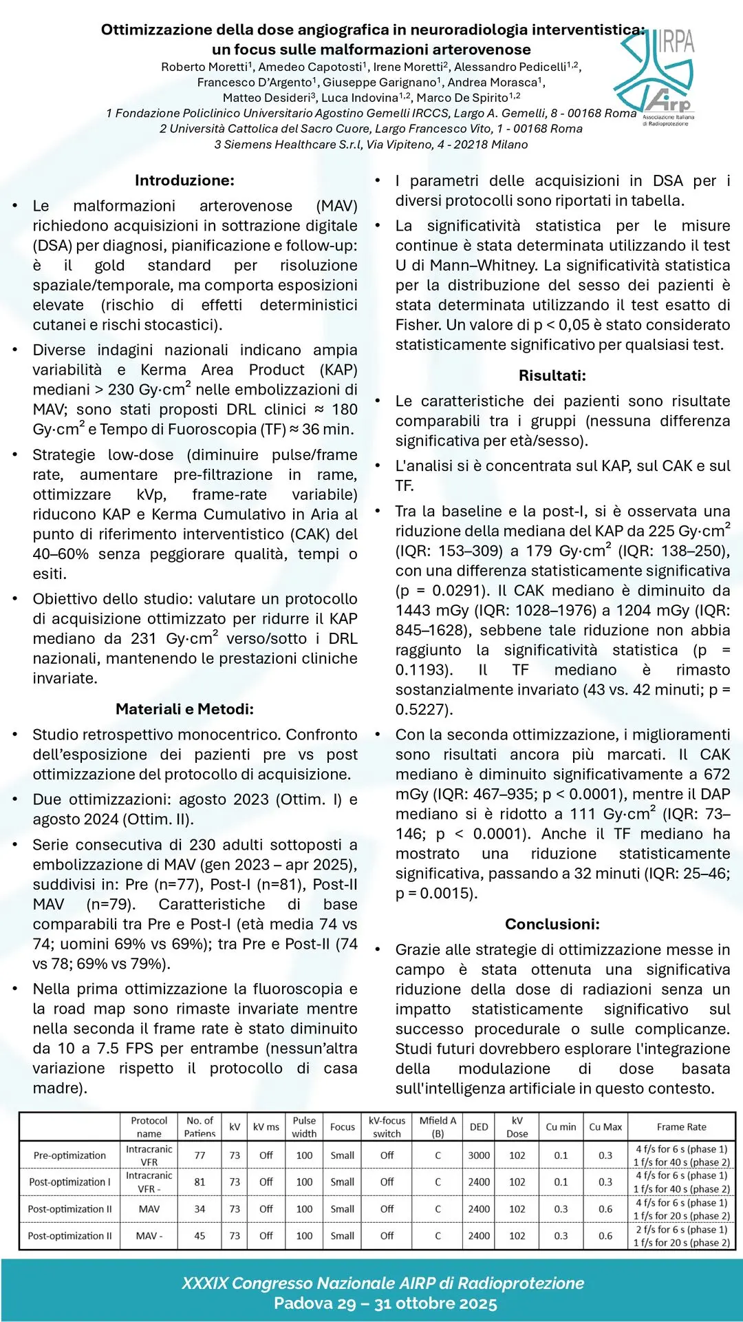 P40 - Ottimizzazione della dose angiografica in neuroradiologia interventistica: un focus sulle malformazioni arterovenose